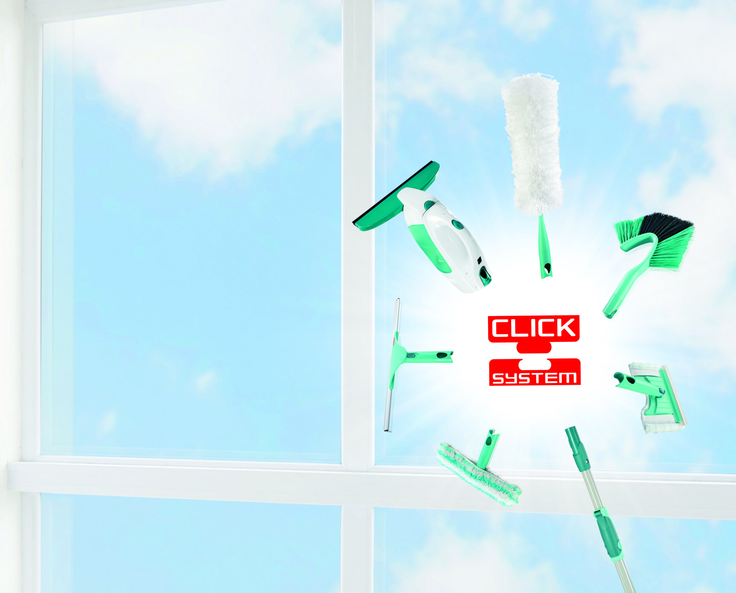 You can achieve a quick and correct cleaning result using the concept of special cleaning accessories and telescopic handles. Many Leifheit products are equipped with Click-system mount, which allows a wide range of Leifheit brand products to be combined with each other. The telescopic handle can be attached to various cleaning accessories – such as a floor-cleaner, brushes or window scrapers. This saves you money and space in the end, as you only need one Click-system handle for household chores that is compatible with other cleaning accessories.