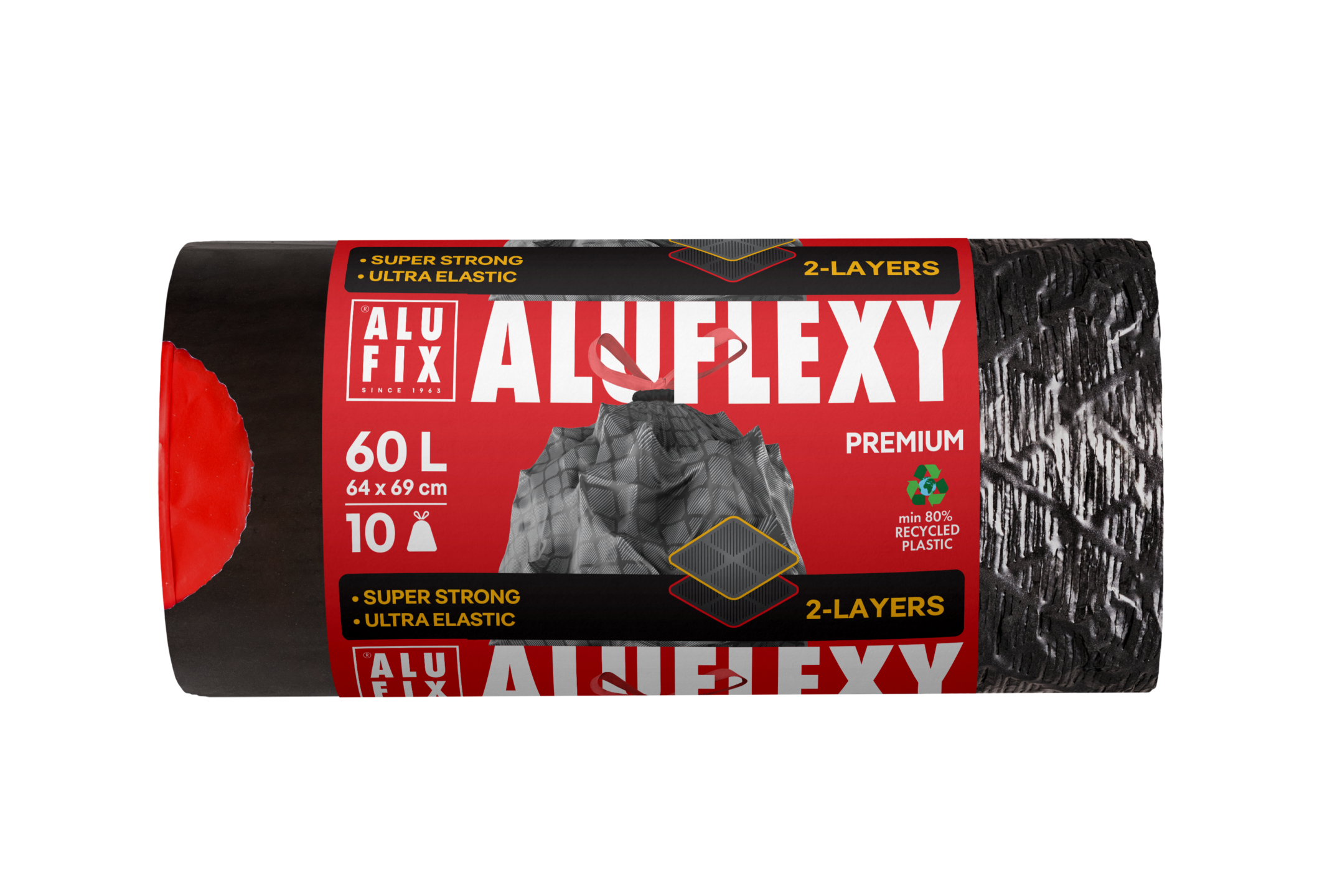 Prügikottide uus ajastu. Uuenduslik ja stiilne FLEXY prügikottide sari, millel on eriline unikaalne teemandikujuline materjali tekstuur, mis muudab kotid eriti venivaks, paindlikuks ning rebenemis- ja torkekindlamaks. Ka terevad esemed kotis ei tee kotti sisselõikeid ja vigastusi.Tugevdatud ja elastne, läbipaistmatu 2-kihiline kile annab täiendava tugevuse ja suurema kandevõime. Prügikottidel on ka praktiline tugevdatud nöör, mis hõlbustab pingutamist, käsitsemist ja transportimist. Koti suurus on 64x69cm. Prügikoti valmistamisel on kasutatud vähemalt 80% taaskasutatud materjali.