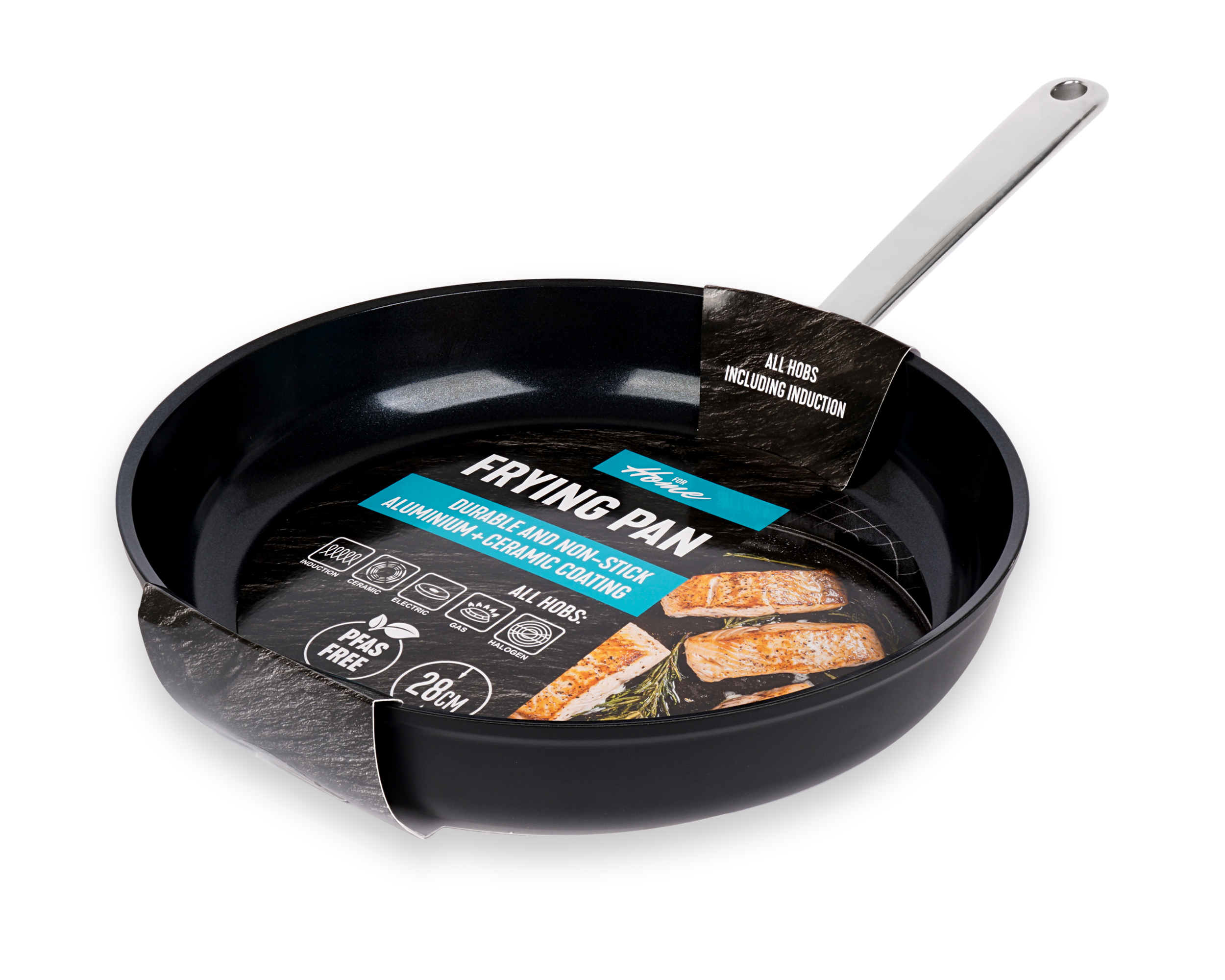 Roostevabast terasest käepidemega alumiiniumist pann. Kvaliteetse keraamilise kattega. Sobib kasutamiseks kõikidel pliidi tüüpidel, sealhulgas induktsioonpliitidel. PFAS vaba.