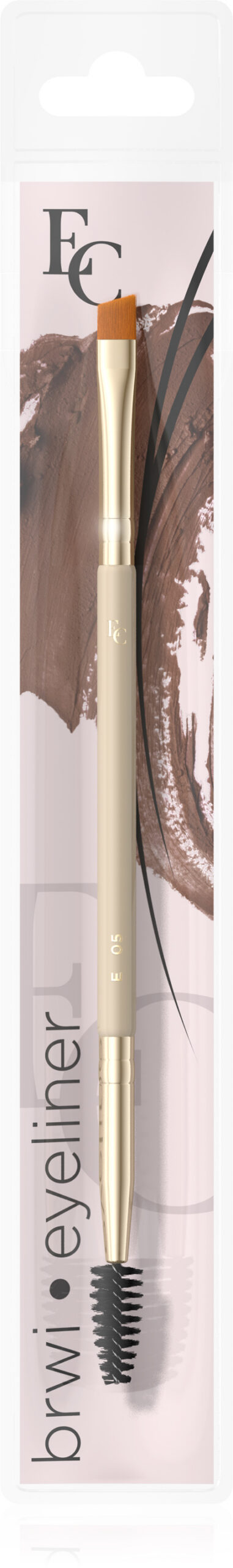 Kahepoolne kulmupintsel E05, mille ühes otsas on täpne kaldus otsaga sünteetiline pintsel, mis sobib hästi nii pressitud kui ka kreemjate toodete (silmalainer, silmapliiats) pealekandmiseks. Harja teine ots on spiraal ripsmete ja kulmude kammimiseks, millega saab värve hajutada ning kulmudele kuju luua. Ergonoomilise kuju ja pikkusega lakitud puidust käepide.