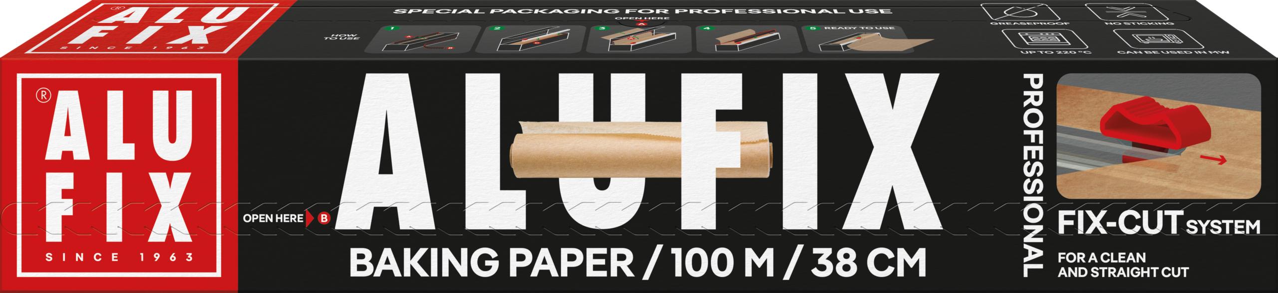 Premium kvaliteediga küpsetuspaber suurusega 38cmx100m. Küpsetuspaberi pind on mittenakkuv ja väga hea rasvakindlusega, kuna on töödeldud spetsiaalse silikooniga mõlemalt lehe poolt. Kuumuskindel kuni 220 °C”, sobib kasutamiseks ka mikrolaineahjus. Küpsetuspaber on valmistatud kõrgeima kvaliteediga tsellulooskiududest, mis teeb selle vastupidavamaks, rebenemiskindlamaks. Keskkonnasõbralik. Paberi tugevus on 39 g/m².
