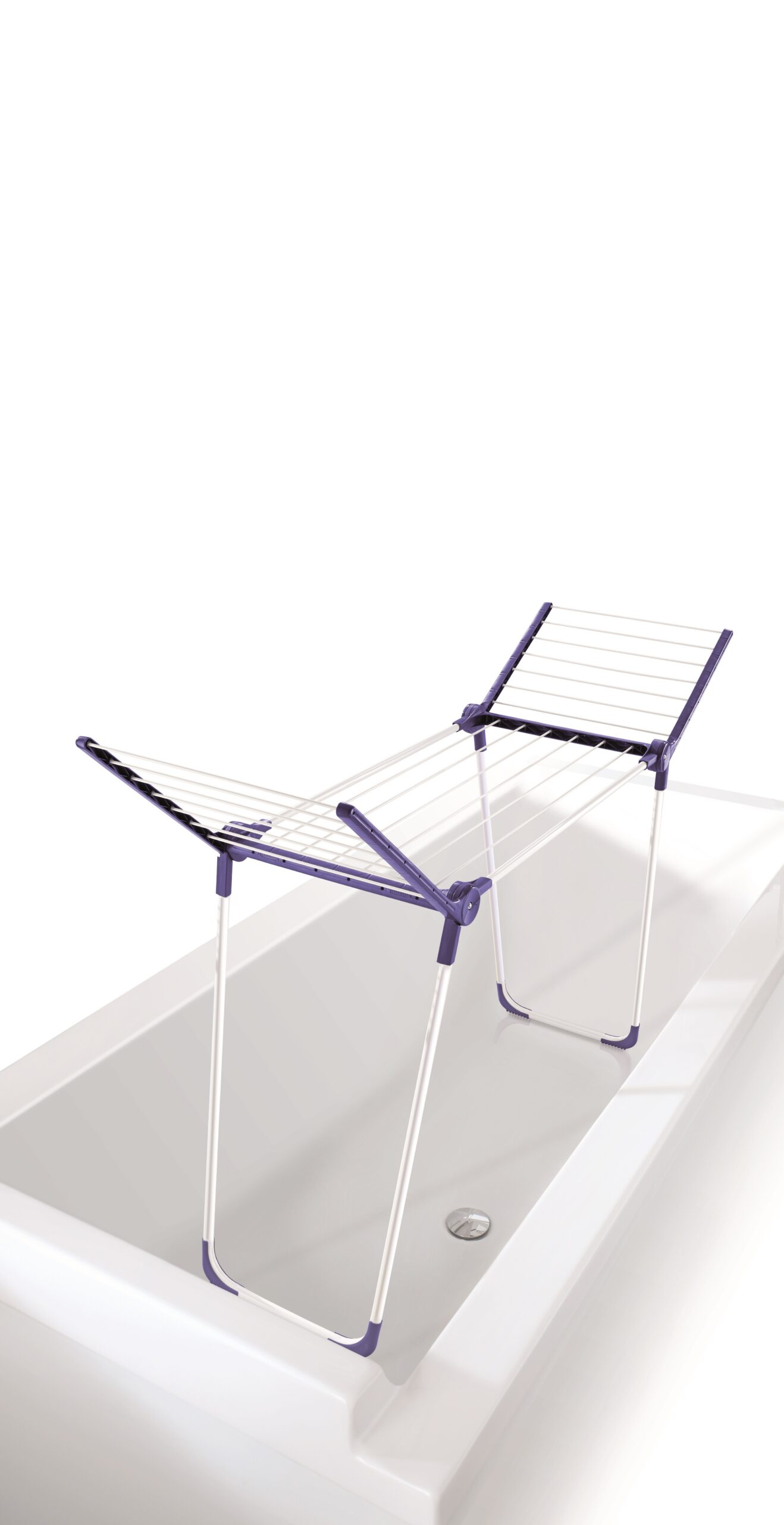 Kvaliteetne ja töökindel ilmastikukindel roostevaba väikeste mõõtmetega lahti käivate tiibadega pesukuivatusrest kuivatuspinnaga 12 m. Sobib väiksematesse kodudesse. Jalase katted on mittelibisevast materjalist, mistõttu asetub kenasti vanni sisse.