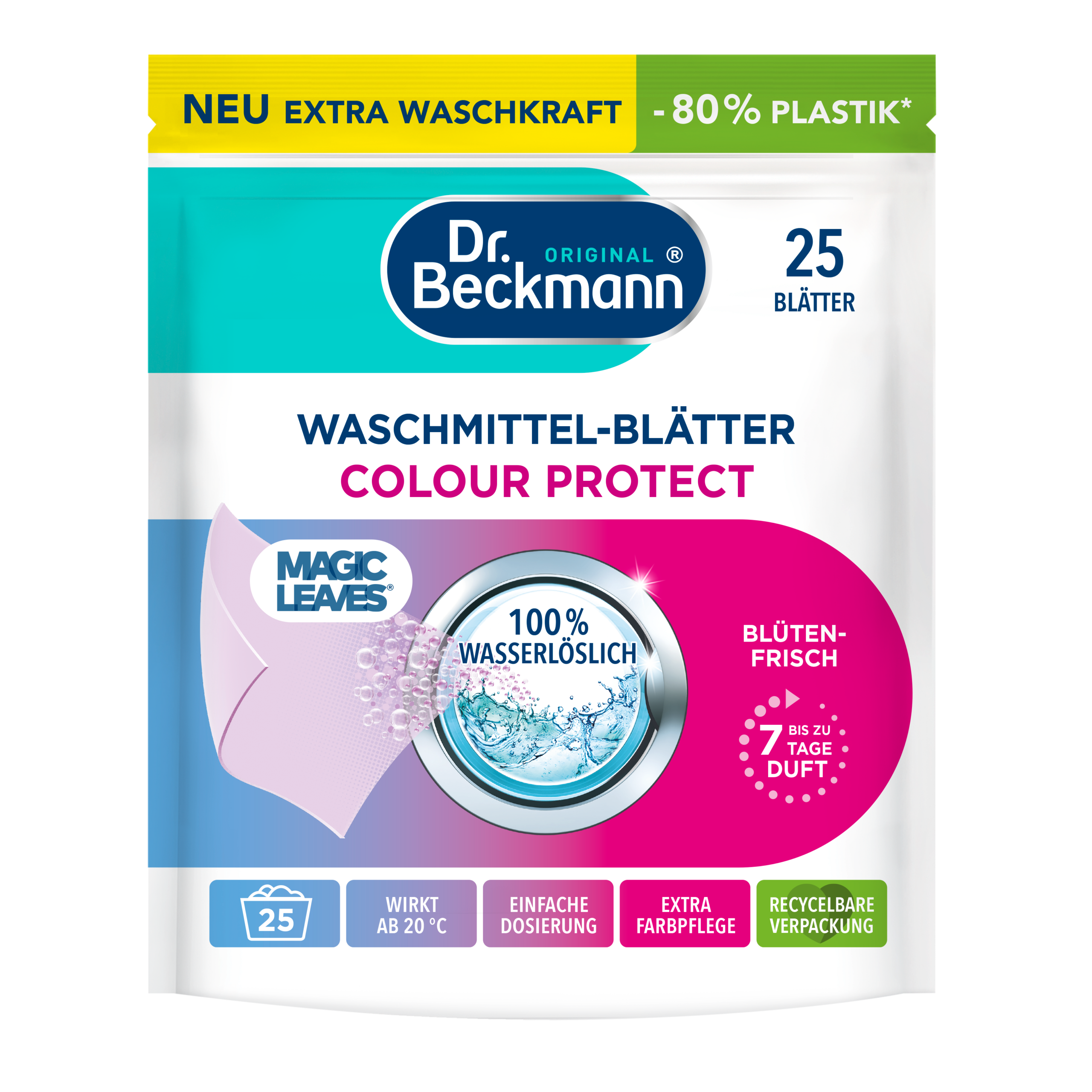 Pesuvahendi leht sisaldab väga kontsentreeritud biolagunevaid pesuaineid ja lahustub pesus veega kokkupuutel täielikult. Üks vees lahustuv leht tagab sügava puhtuse ja särava värskuse – isegi madalatel temperatuuridel, alates 20°C temperatuurist.
