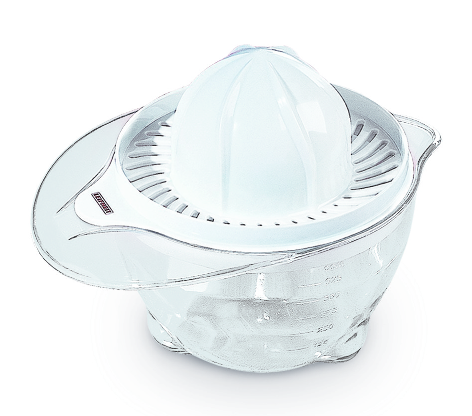Topelt koonus suurte ja väikeste tsitrusviljade jaoks. Mahla kogumisanumal mõõteskaala ja valamistila. Kergesti puhastatav.