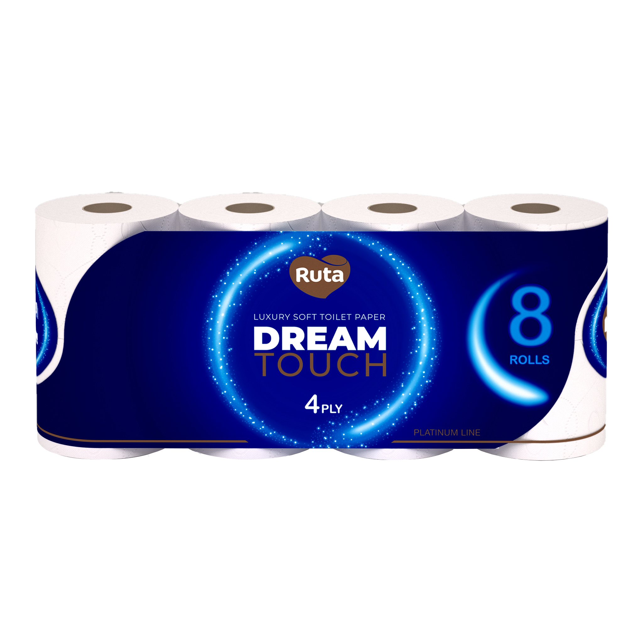 Ruta Dream Touch sarja preemium kvaliteediga 4-kihiline valge tualettpaber on ülimalt pehme ning vastupidav. Tootmisel kasutatakse looduslikke koostisosasid: 60% okaspuu / 30% lehtpuu / 10% eukalüpt, mis võimaldab saavutada paberi ülima pehmuse ja tugevuse. Rulli üldpikkus: 18,75m. Rullis on 150 4-kihilist lehte mõõtudega 9,6×12,5cm. Toodetud Ukrainas.