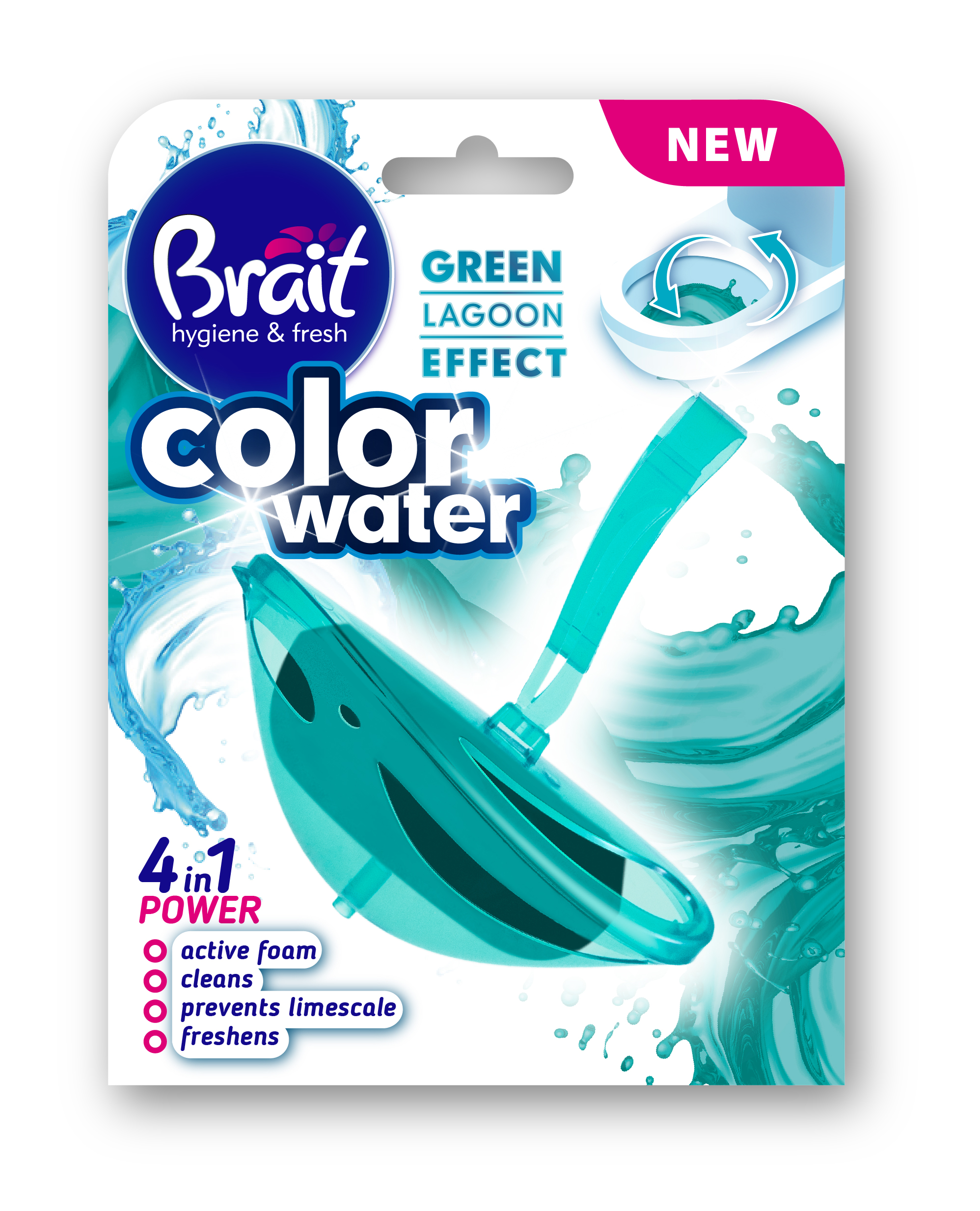 Meeldivalt värske mündilõhnaline tualetiseep imiteerib laguunisinise mere värvi ja lõhna. Meeldiv mündi ja eukalüpti lõhn tagab värskuse sinu tualettruumis ning aktiivsed vahuosakesed muudavad loputusvee värvi kaunilt laguunisiniseks. Seebi 4in1 akviinve koositis puhastab tualetipoti, ennetab katlakivi teket ning värskendab õhku vaid ühe veetõmbega. Tualetiseebi ümbrise ja kinnituskonksu innovatiivne kuju sobitub hästi pea kõikidele tualettpottidele, mis tagab parima tulemuse puhastusel ja värskendamisel.